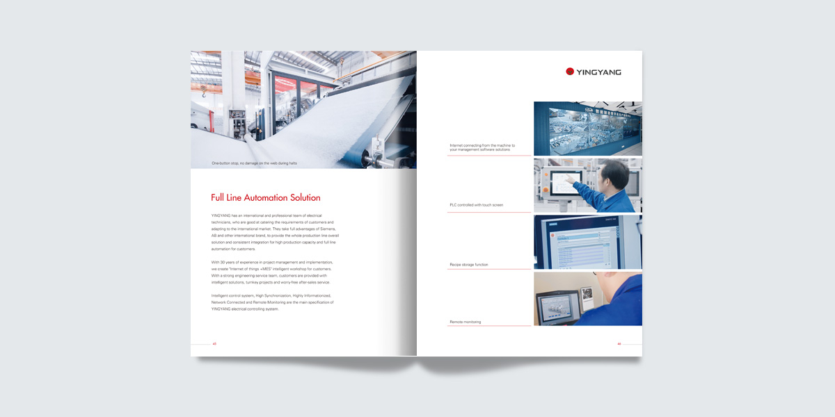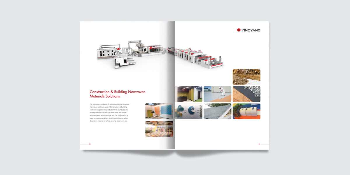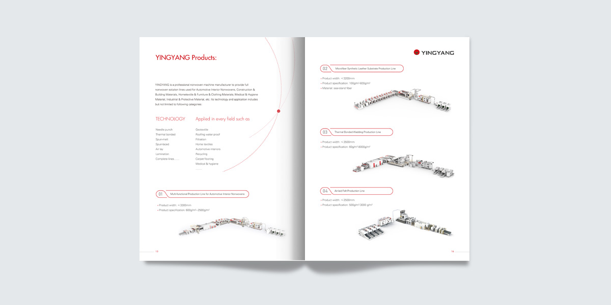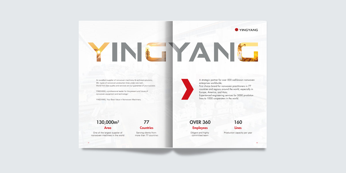 江蘇迎陽(yáng)無(wú)紡機(jī)械有限公司是國(guó)內(nèi)非織造(無(wú)紡)設(shè)備專業(yè)的制造商,創(chuàng)建于1992年,是一家累積近三十年實(shí)際設(shè)計(jì)制造經(jīng)驗(yàn),集無(wú)紡設(shè)備和無(wú)紡布制品研究開(kāi)發(fā)、技術(shù)工藝與配套服務(wù)為一體的綜合性企業(yè)。畫冊(cè)設(shè)計(jì)/廣告設(shè)計(jì)/蘇州宣傳冊(cè)設(shè)計(jì)